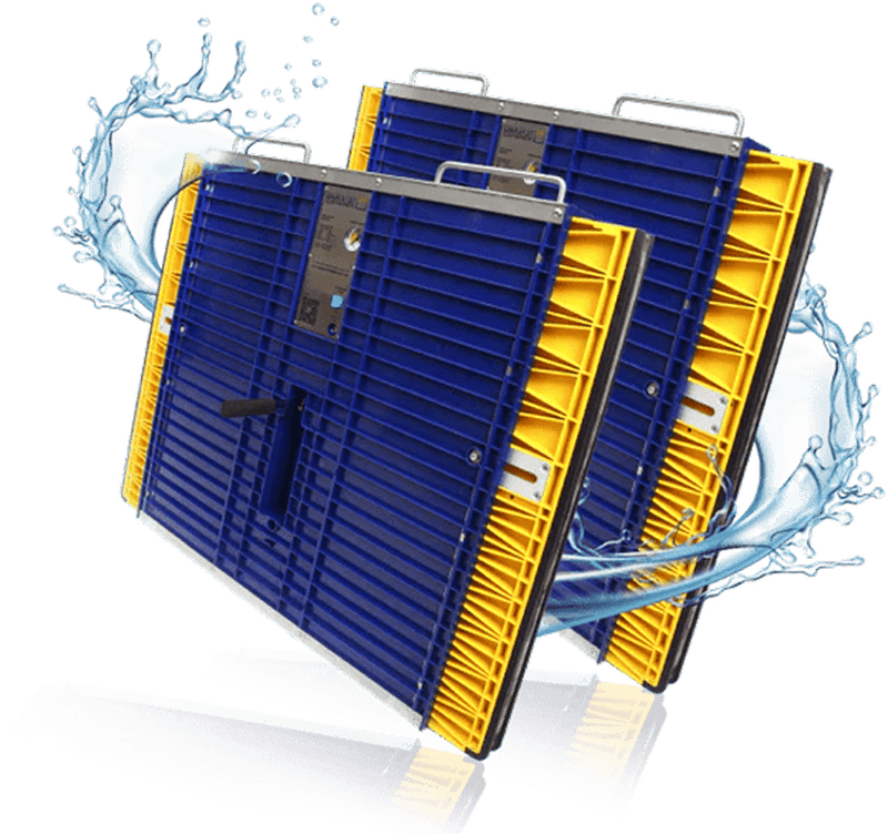 A patented inflatable seal, operated by a built-in air pump and pressure gauge, ensures a secure, watertight fit for various door openings.