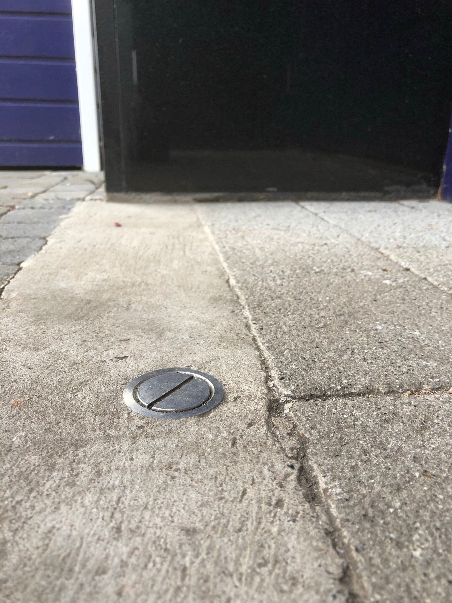 Cuando no se utiliza el poste de extensión, se atornilla una tapa de acero inoxidable a la base. Esta se coloca en posición horizontal sobre el suelo, lo que hace que el área tenga un aspecto agradable y ordenado.